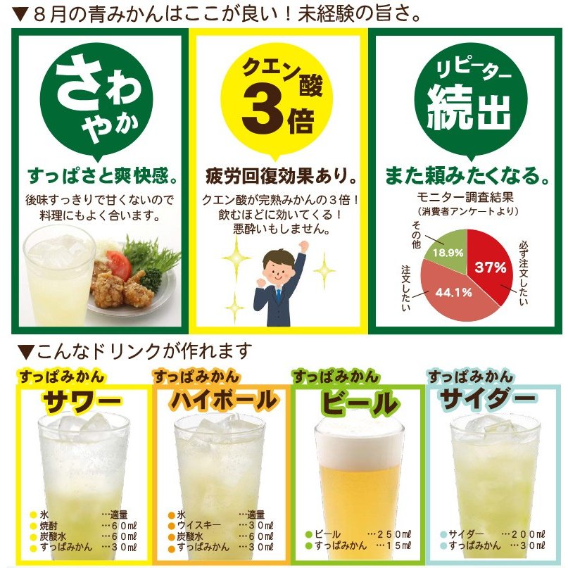 「すっぱみかん」はみかん農家さんが美味しいみかんを作るために8月ごろに摘果します。その酸っぱい青みかんで絞って作られたみかんの事です。