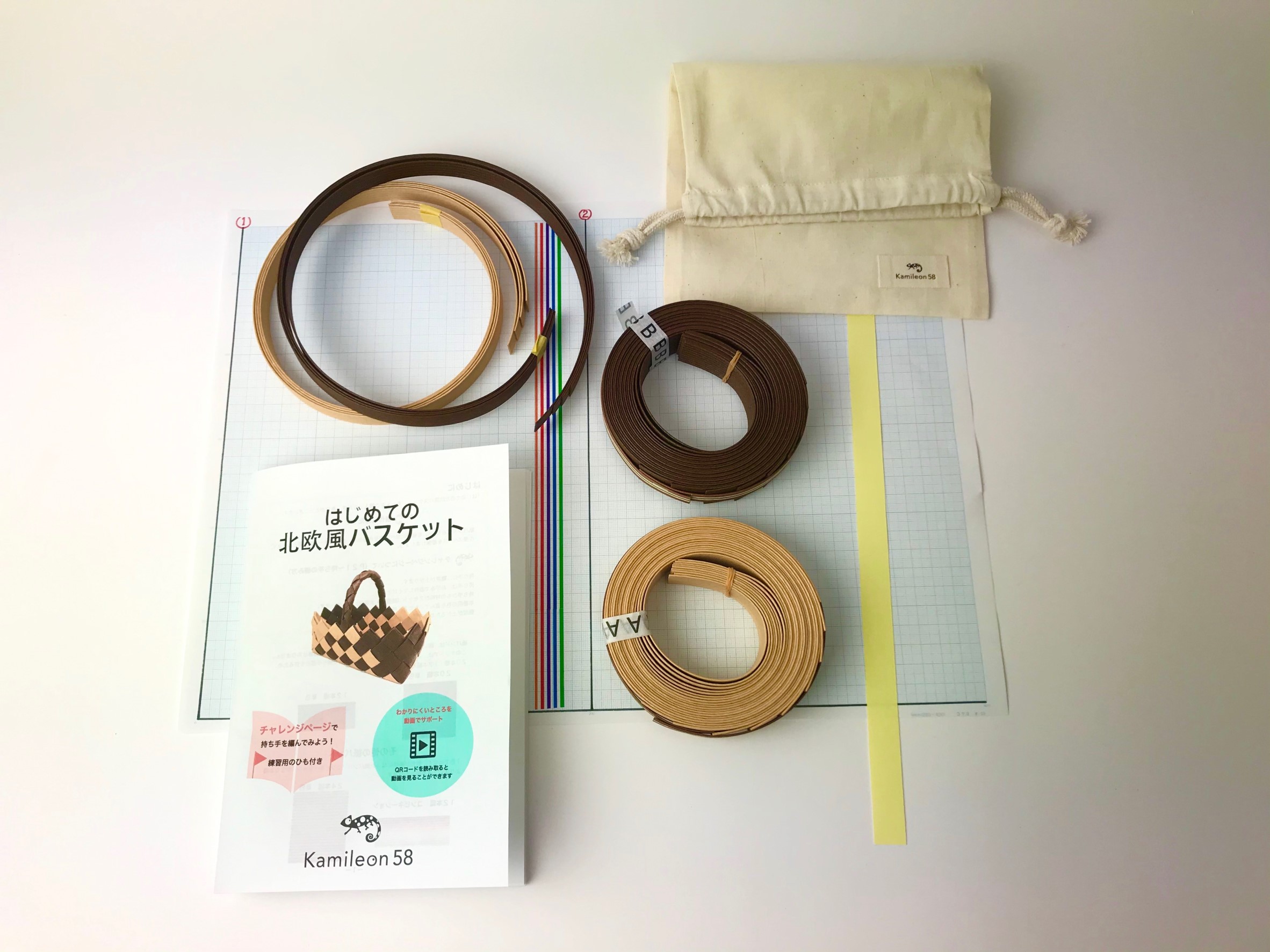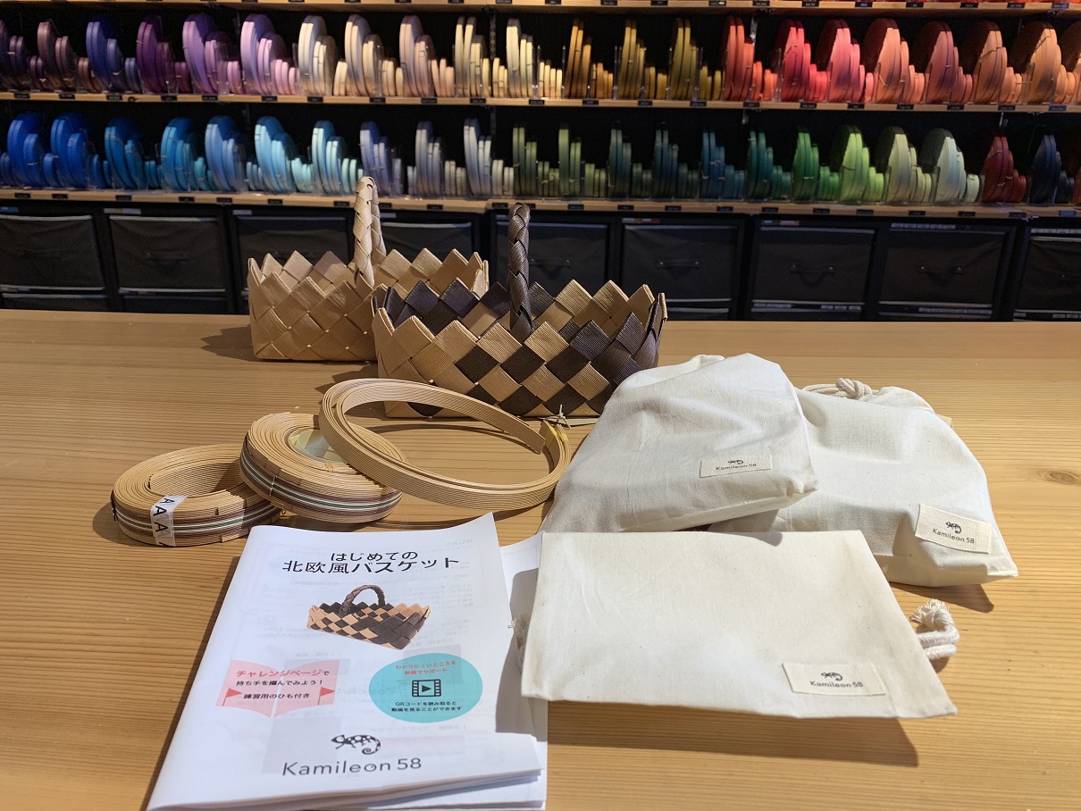 カミレオン58にしかない20本幅で編むかごのキットです。