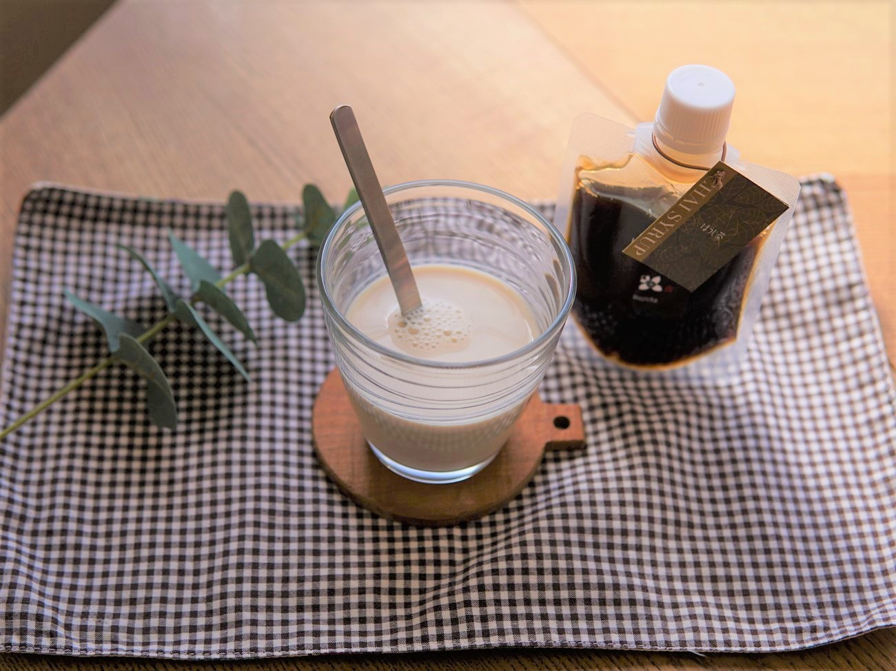 チャイシロップ小さじ1.5杯に対して、160ccの牛乳や豆乳、炭酸水などで希釈してお召し上がりください。とっても濃いシロップです。先に小さじ1杯ほどの水で解いておくと混ざりやすくなります。