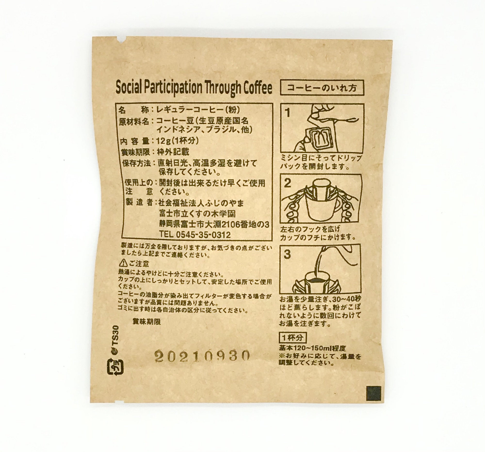 ※富士市立くすの木学園 オリジナルドリップパックコーヒー 「くすの木ブレンド」(中煎り) 12パックはご注文をいただいてから一つ一つ心を込めて製造しています。