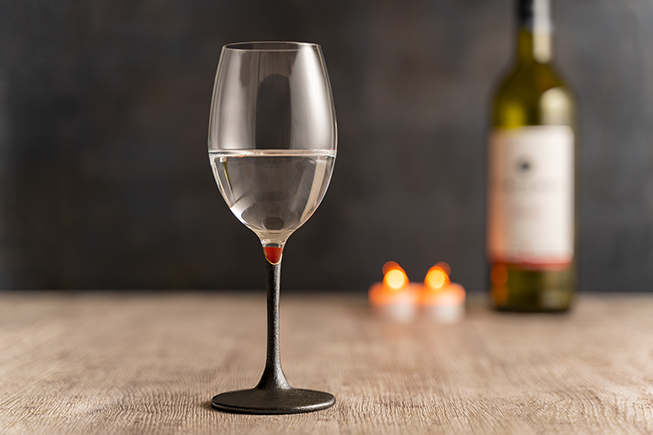 漆のドレスをまとったワイングラス。金剛石目塗(鳥羽漆芸)からの提案です。