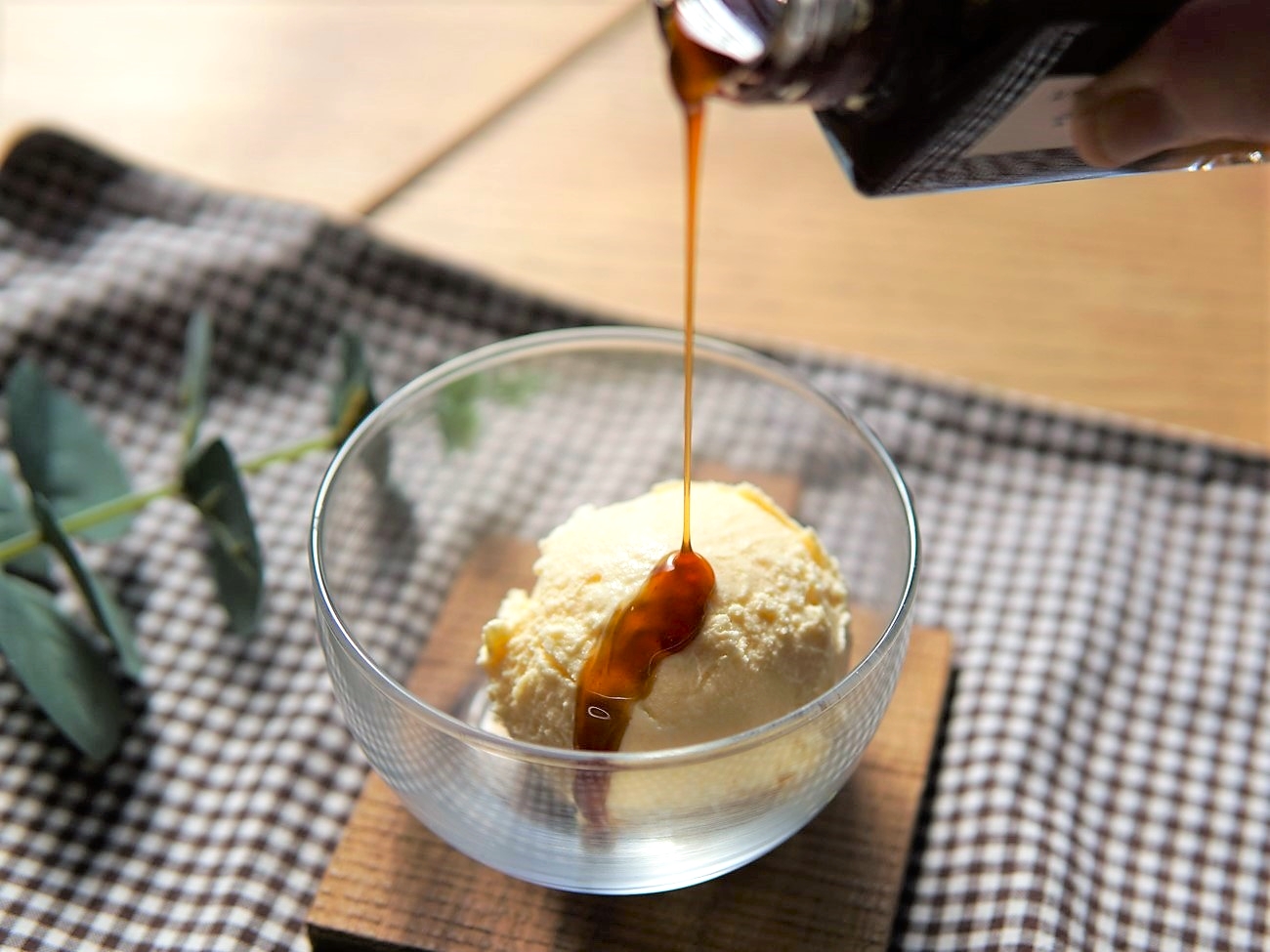 オリゴ糖を使っているので甘さも柔らかく、アイスクリームやプリンのソースとしてもお楽しみいただけます。