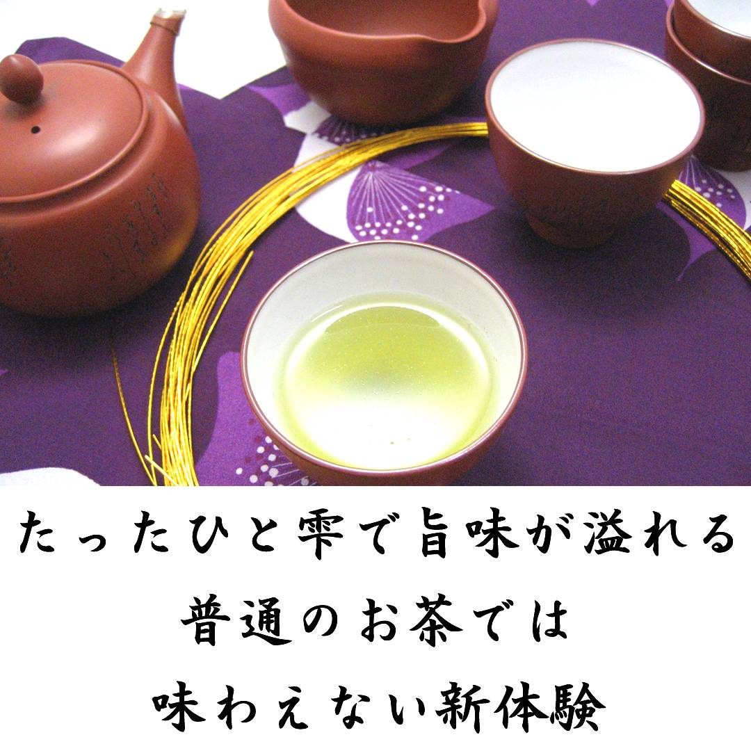 少量を舌の上でころがすと、目が覚めるような深緑の香りと、甘味・渋味がいりまじった味わいを堪能することができます。