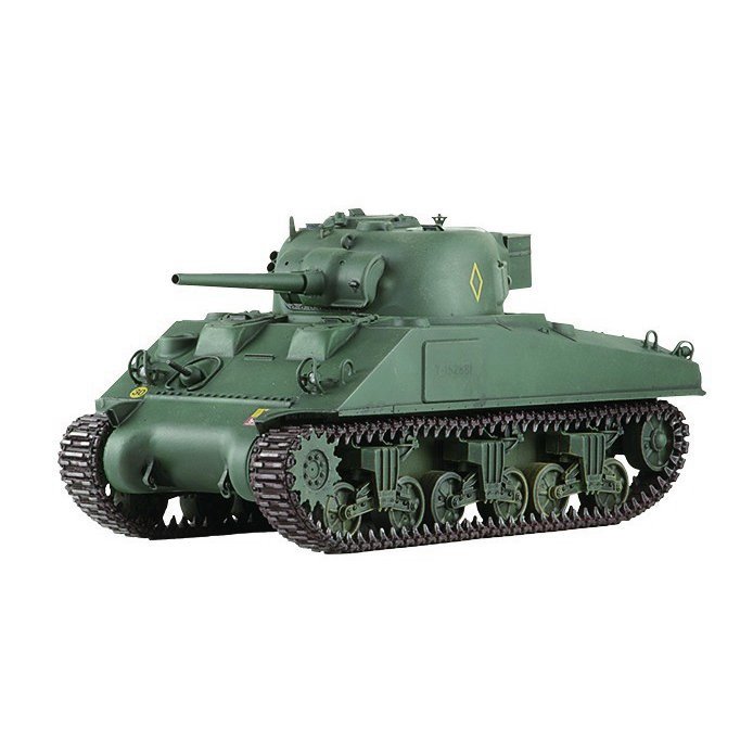 〈シャーマンIII 中期型について〉M4A2は量産されたM4シャーマンの中では唯一ディーゼルエンジンが搭載され、燃料の供給の関係からレンドリース法により主に英連邦諸国とソビエト連邦、アメリカ海兵隊などに配備されました。初期のM4A2は操縦手席前方に直視式バイザーを装備していましたが、防御上の理由により廃止され、防御力の高いシンプルな形状に変更されました。M4A2ではこのドライバーズフードは鋳造製と溶接製の2種類が並行して生産されました。英連邦軍に配備されたM4A2はシャーマンIIIの呼称が与えられ、シャーマンV(M4A4)とともに英連邦軍のシャーマンの主力として、反攻作戦の原動力となりました。中期型はチュニジア戦以降に英軍に配備され、ノルマンディ戦の頃には英連邦軍のシャーマンIIIの多くがこのタイプでした。アンテナや砲塔後部の雑具箱など、英軍独特の装備が施され、終戦まで活躍を続けたのです。| メーカー品番 | 35-018 |