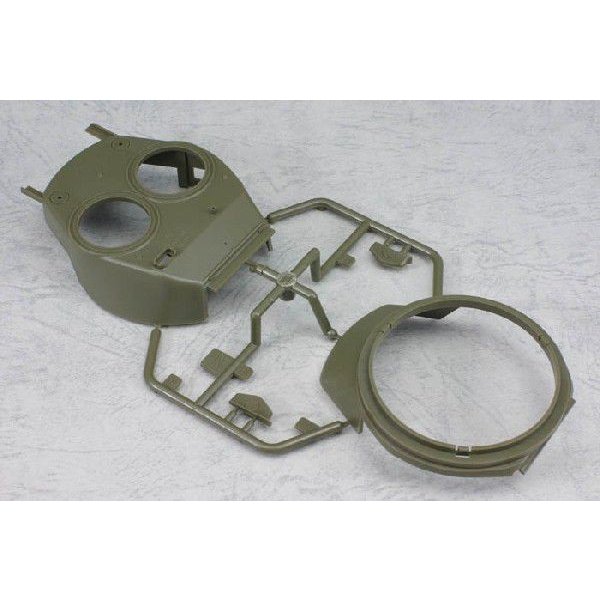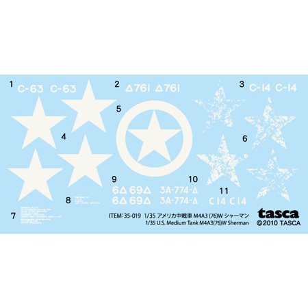 キットは足回りと装備品の一部を除き殆どのパーツを新設計。シンプルな一枚板の前面装甲板と大型化ドライバーズハッチを持つM4A3の後期型車体を実車に忠実に。ドライバーズハッチのヒンジ部分は車体側一部を別パーツ化することにより抜け勾配に制約されないヒンジ形状を再現すると共にインジェクションキットで初めてヒンジの向きが車体に平行な実車の姿を再現。車体後部の荷物ラックと排気ディフレクターは収納状態と展開状態の両方を再現可。エンジンデッキは後部のパネルが分割された後期仕様も選択可。複雑形状の76mm砲塔は装填手と車長用の両方のキューポラを持つ初期型を再現。ピストルポートと砲塔後部にスライド金型を使用し複雑な76mm砲塔を忠実に。76mm砲身はシンプルな砲身先端形状の初期型とマズルブレーキ装着用のアタッチメントを持つ中期型の2種類。車長用キューポラは透明部品とすることでビジョンブロックの透明部分をリアルに。ライトガードやペリスコープガード等にエッチングパーツを用意。砲塔上のM2重機関銃、米軍ジェリカン付。マーキングは北西ヨーロッパ戦線のアメリカ軍の3種類。※フィギュア4体つき。 車両はアスカモデル アイテム35019と同じです。