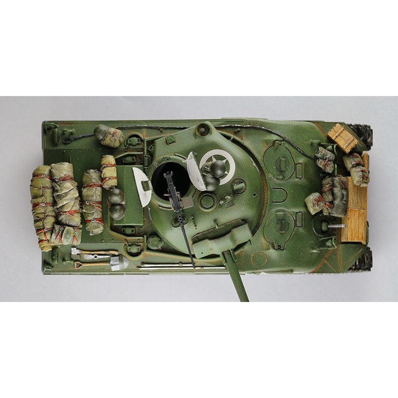 アメリカ軍M4シャーマン後期型コンポジット車体“チャイナクリッパー”の1/35スケールモデル組立キットです。コンポジット(合成)という名の付く、車体前方が鋳造、後方は溶接車体と2種のタイプを合わせた特徴ある車体を再現しました。砲塔は右側に補強を加えたチークアーマー砲塔です。そして、付属の精密なレジンパーツをつかって現地で良く見られた荷物を積んだシャーマンを演出することもできます。