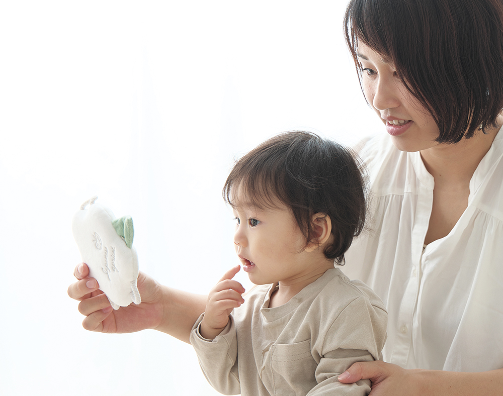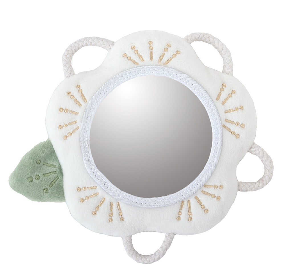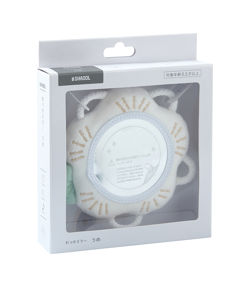 「わっかミラー」は、好奇心旺盛な赤ちゃんのためにつくられた布製のソフトミラーです。身の回りのものに興味が出てくる生後6か月頃から、視力の発達とともにミラーに映るものを目で追いかけたり、観察するようになります。