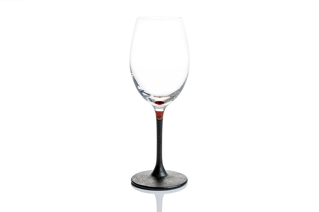 漆のドレスをまとったワイングラス。金剛石目塗(鳥羽漆芸)からの提案です。