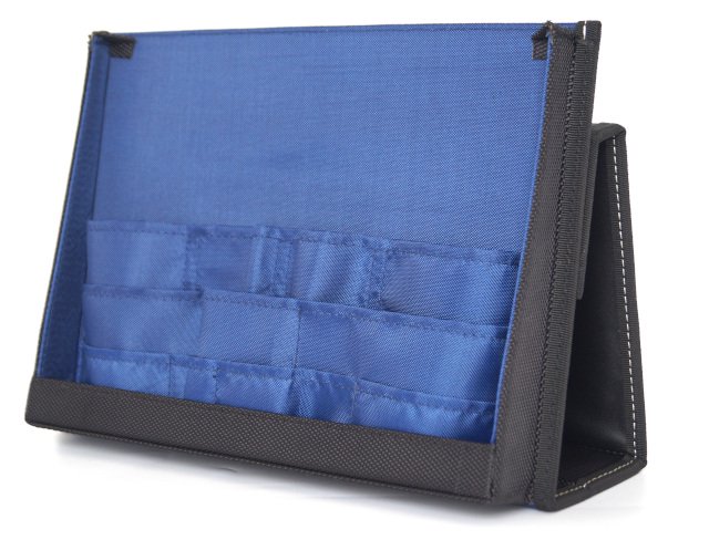 さらに、一番上の段はマジックテープ式となっているため、幅の広い手帳やタブレットなども収納可能です。
