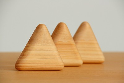 安全性には特に配慮し、山頂と山腹は二種類の木材を分けて表現していますが、つなぎ目はとても滑らかで触っただけではわかりません。万が一、赤ちゃんが口に入れてしまってもいいように、中身には小豆を使用しました。