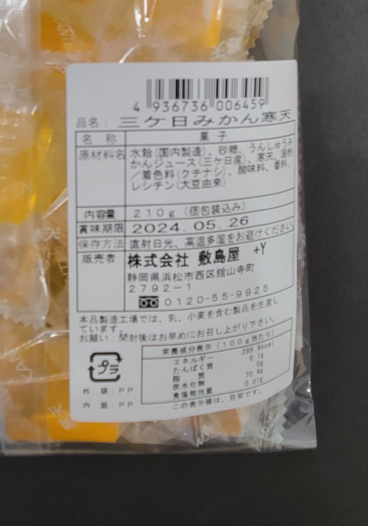敷島屋 三ケ日みかん寒天ゼリー210g