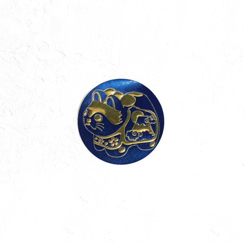 日本の伝統デザインである花札と犬張子をモチーフに、日本をイメージした ポップで 高級感 のあるデザイン。 シール印刷屋さんが本気で作った、レトロな活版印刷がクセになる、エンボスの質感が再現されています。