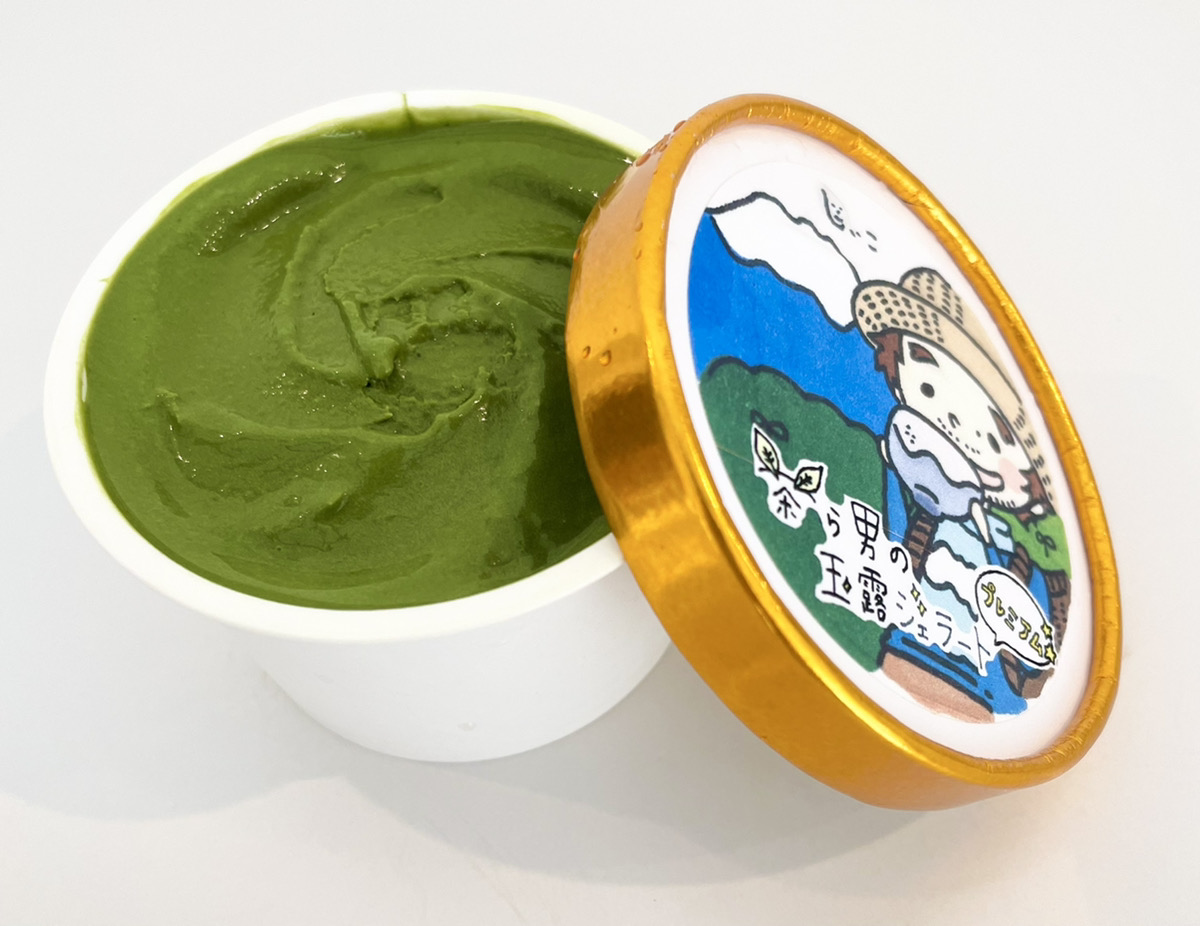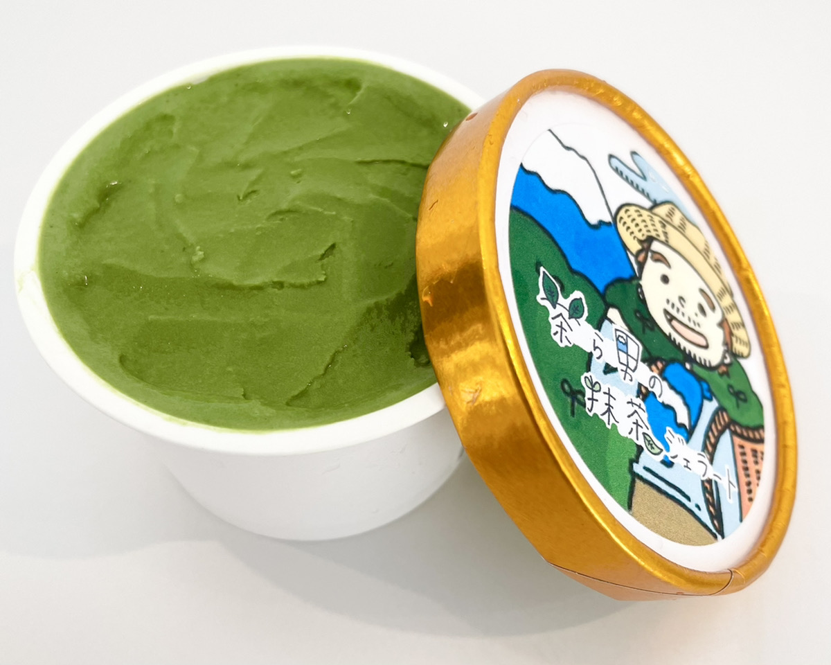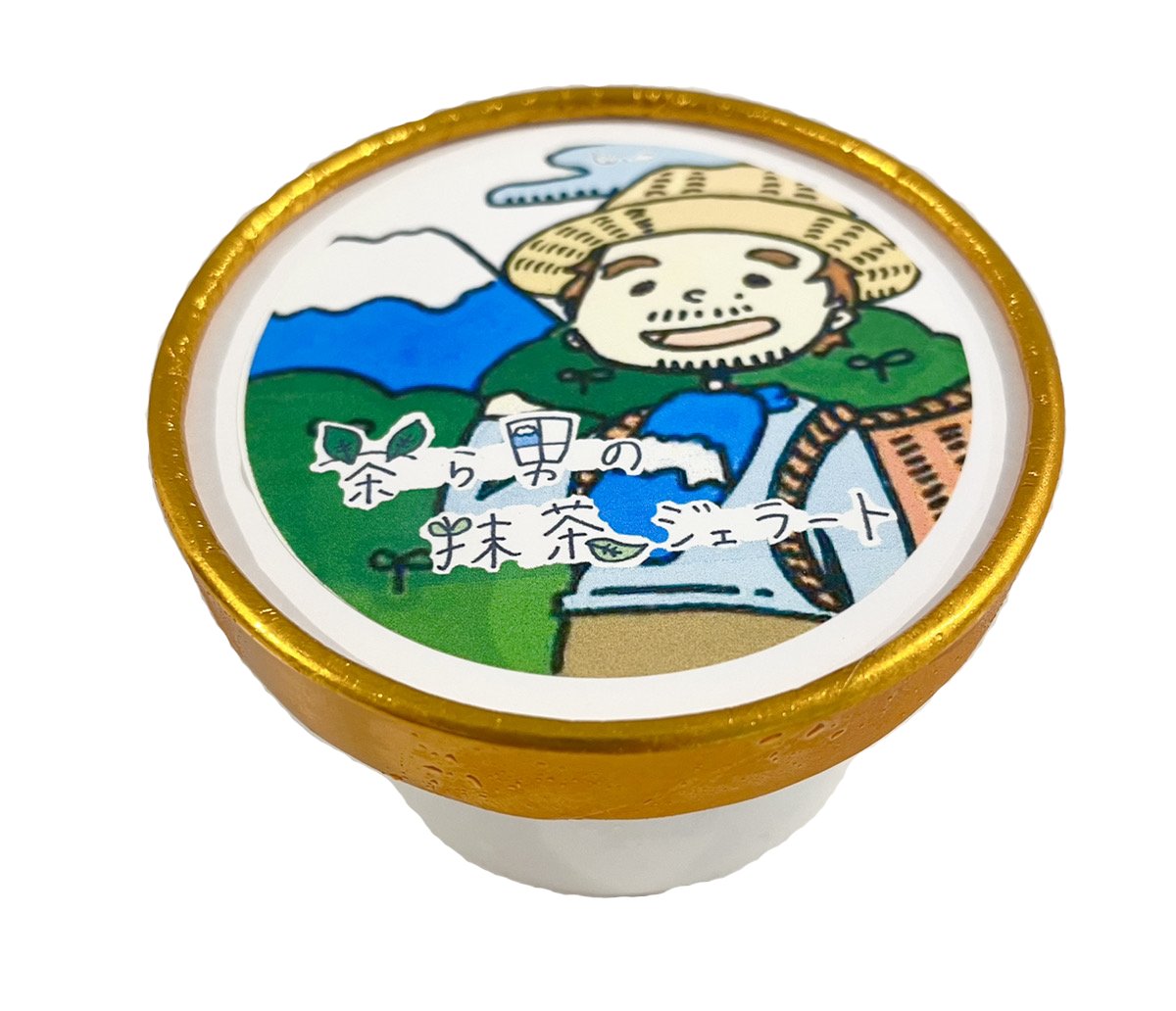 静岡県富士市のゆるキャラ「茶ら男」の力作!!自家製茶葉を贅沢に使用した濃厚ジェラートに仕立てました。