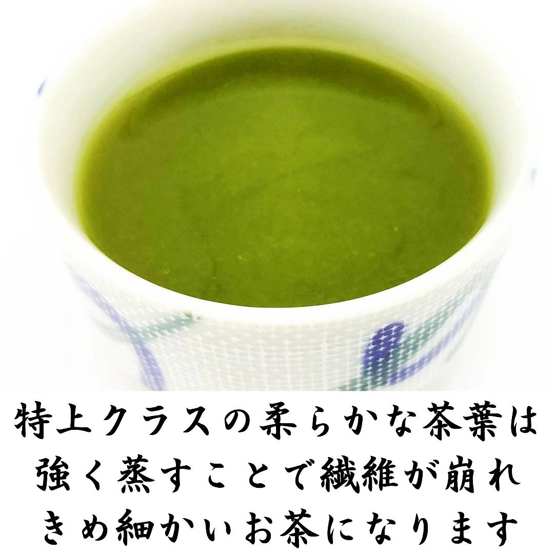 普通煎茶の2〜3倍の蒸し時間をかけ、繊維をホロホロと柔らかくしました。