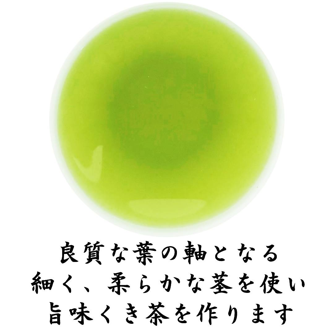 くき茶は味がうすいと思われがちですが、上物のクキを使用していますのでハッキリと茶の甘味、旨味を楽しむことができます。