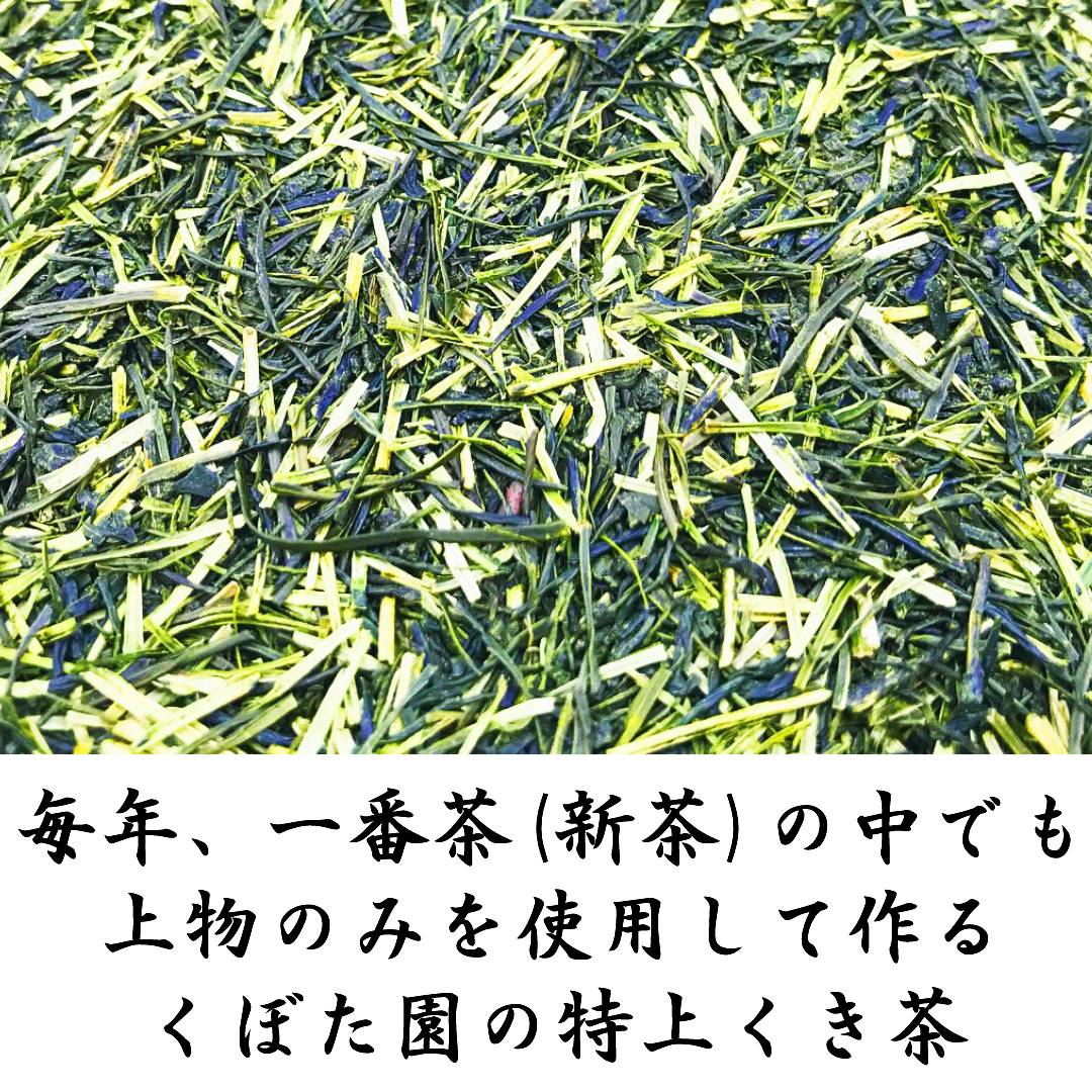 くぼた園の特上くき茶は、その年の高級新茶から採れるクキのみを使用して作られています。