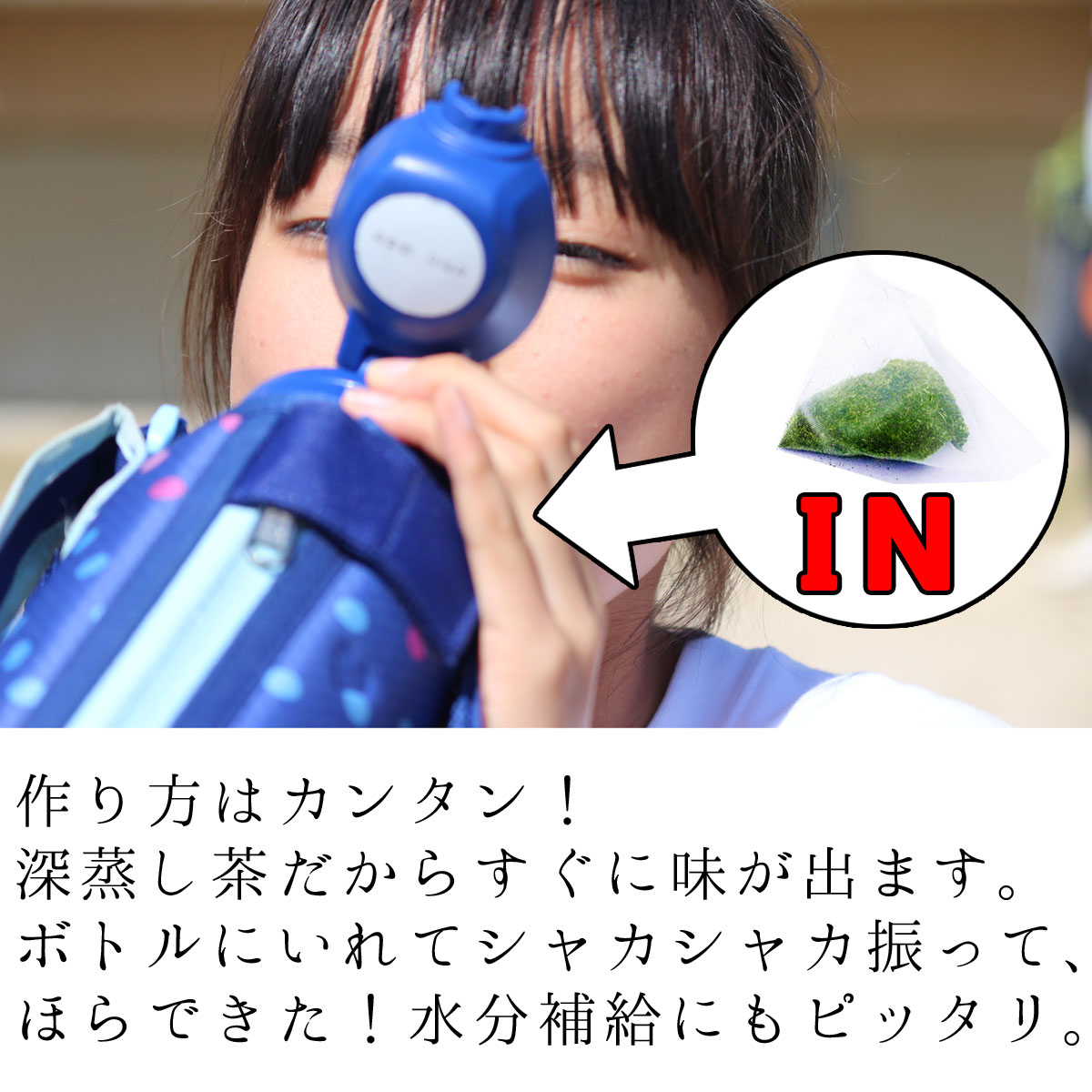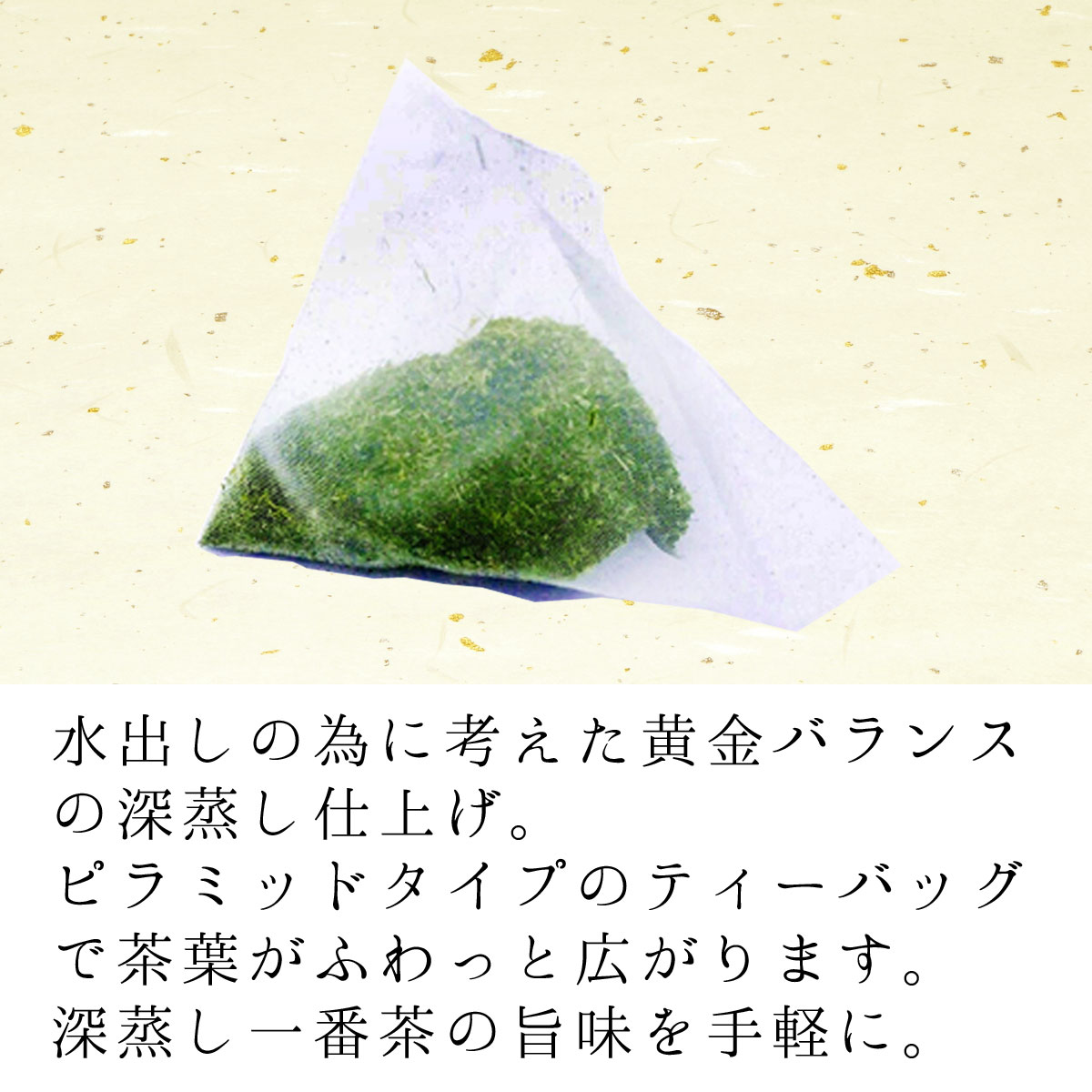 静岡産の深蒸し一番茶と粉茶を使って作るオリジナルブレンドのティーバッグ