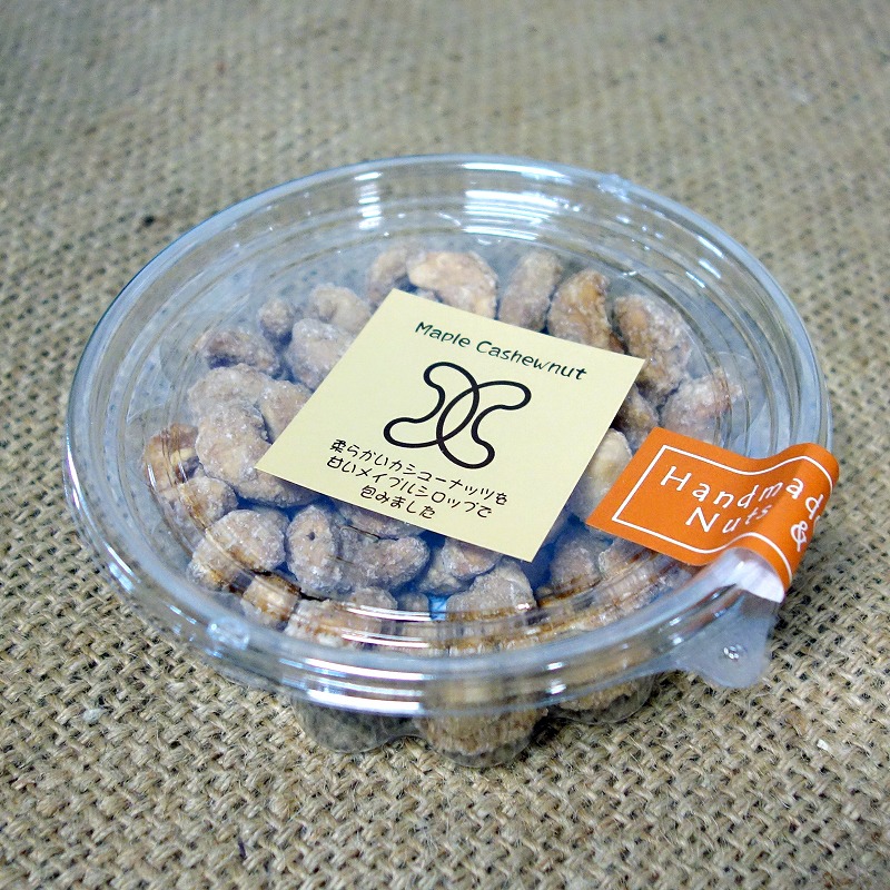 柔らかいカシューナッツを、甘いメイプルシロップで包んだ、当店のオリジナルです。