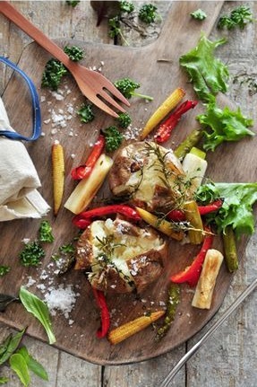 お好みの野菜にオリーブオイルをかけ、オーブンへ。プレシャスミックスをふりかけて召し上がれ。