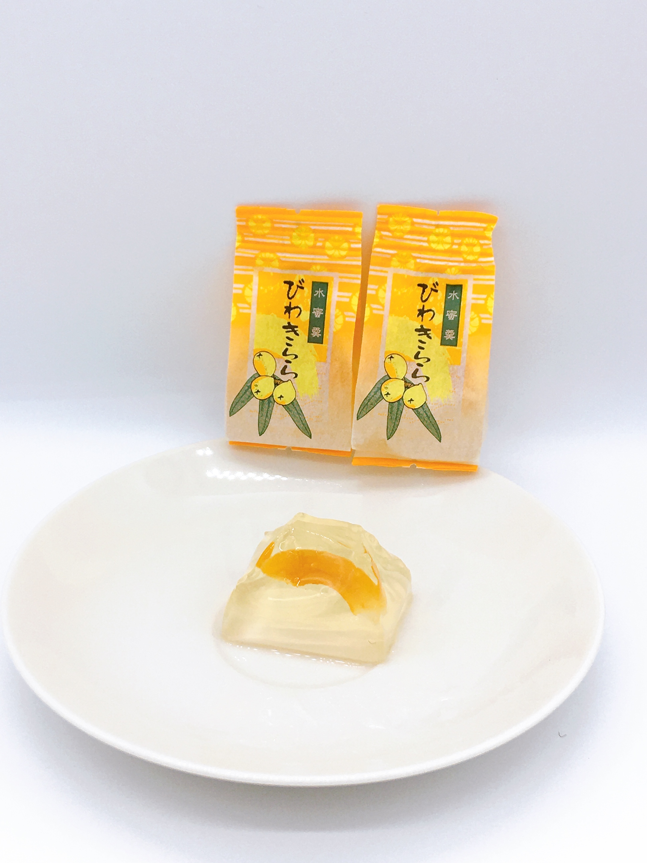 枇杷を丸ごと皮をむいて種をとり、カットした枇杷が入った一口サイズのゼリーです。冷やして食べるとおいしく、冷凍庫で凍らせてアイスにして食べることもできる一つで二度美味しい商品です。