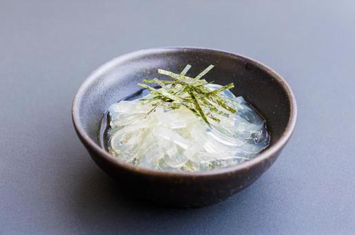 | 原材料 | 天草、粉末寒天、醸造酢、分離液状ドレッシング〔醤油(淡口、濃口)、なたねサラダ油、醸造酢、本わさび、食塩、調味料(アミノ酸等)、増粘剤(キサンタンガム)、香料、(原材料の一部に小麦、大豆を含む)〕 |
