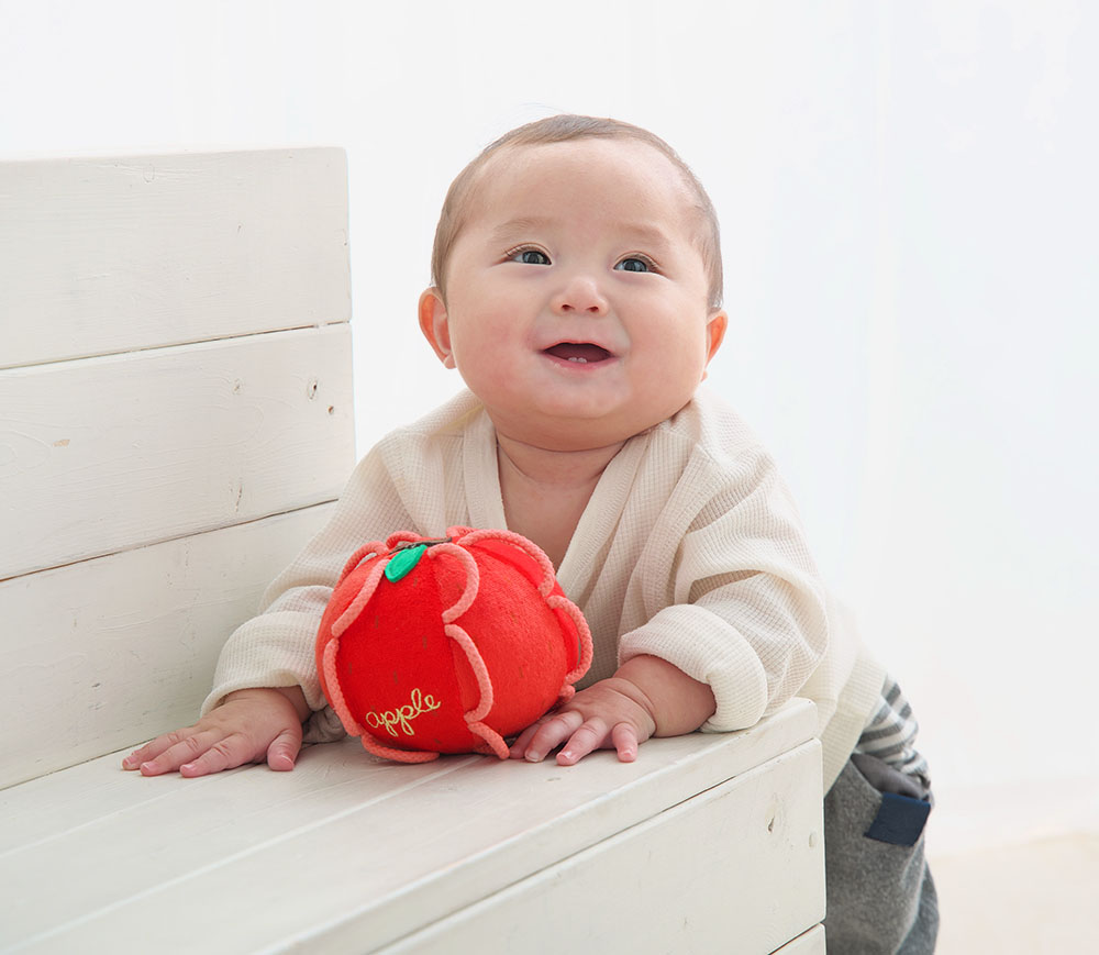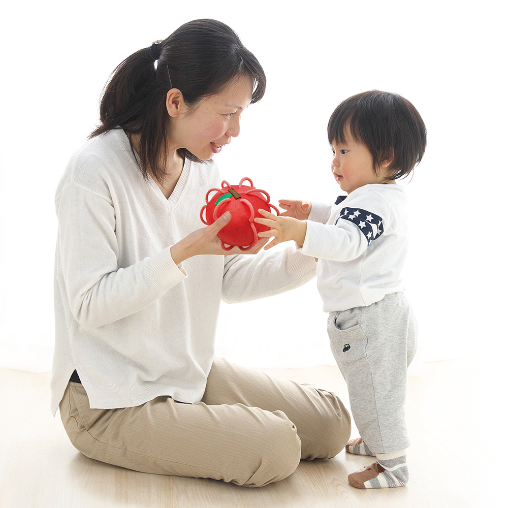 わっかがついたカラフルなデザインの「わっかボール」は、好奇心旺盛な赤ちゃんのためにつくられた布製ボールです。