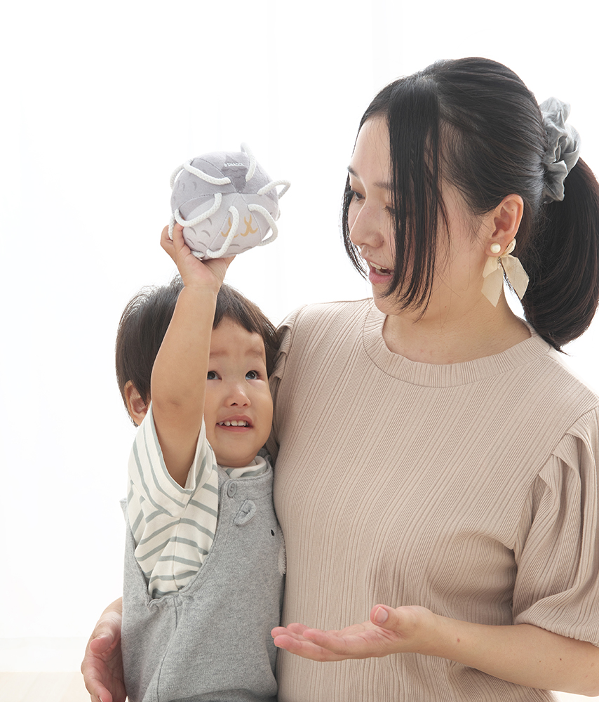 わっかがついたカラフルなデザインの「わっかボール」は、好奇心旺盛な赤ちゃんのためにつくられた布製ボールです。