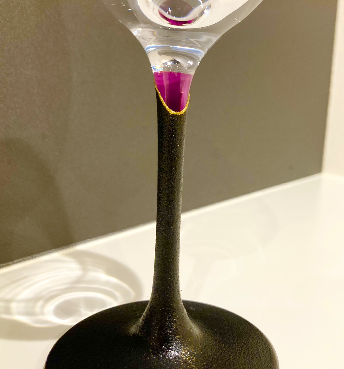 漆のドレスをまとったワイングラス。金剛石目塗(鳥羽漆芸)からの提案です。