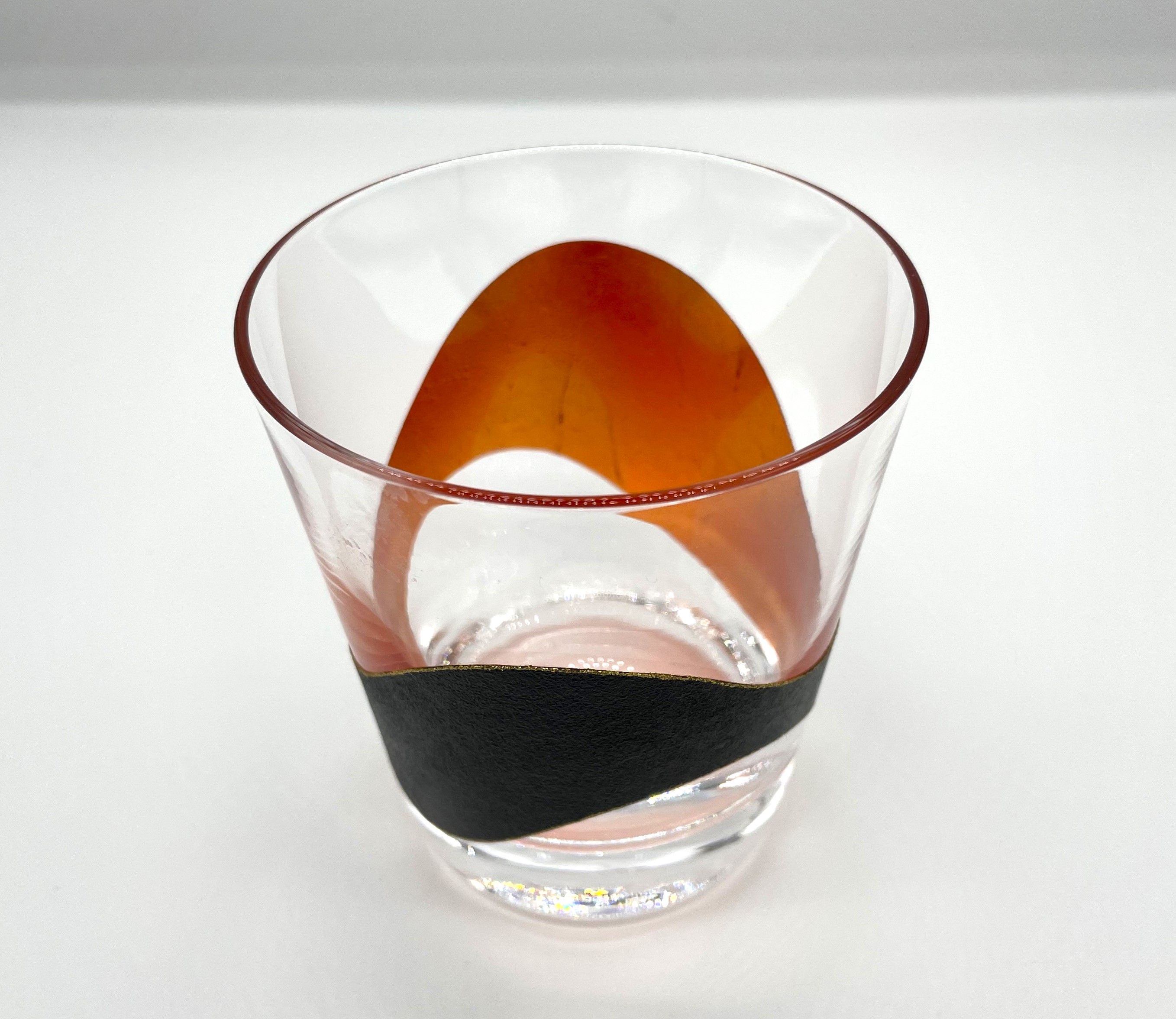 グラスに金箔やホワイトゴールド箔をはり、その上を金剛石目塗独自の砂の石目にした後、仕上げの漆を塗った逸品です。