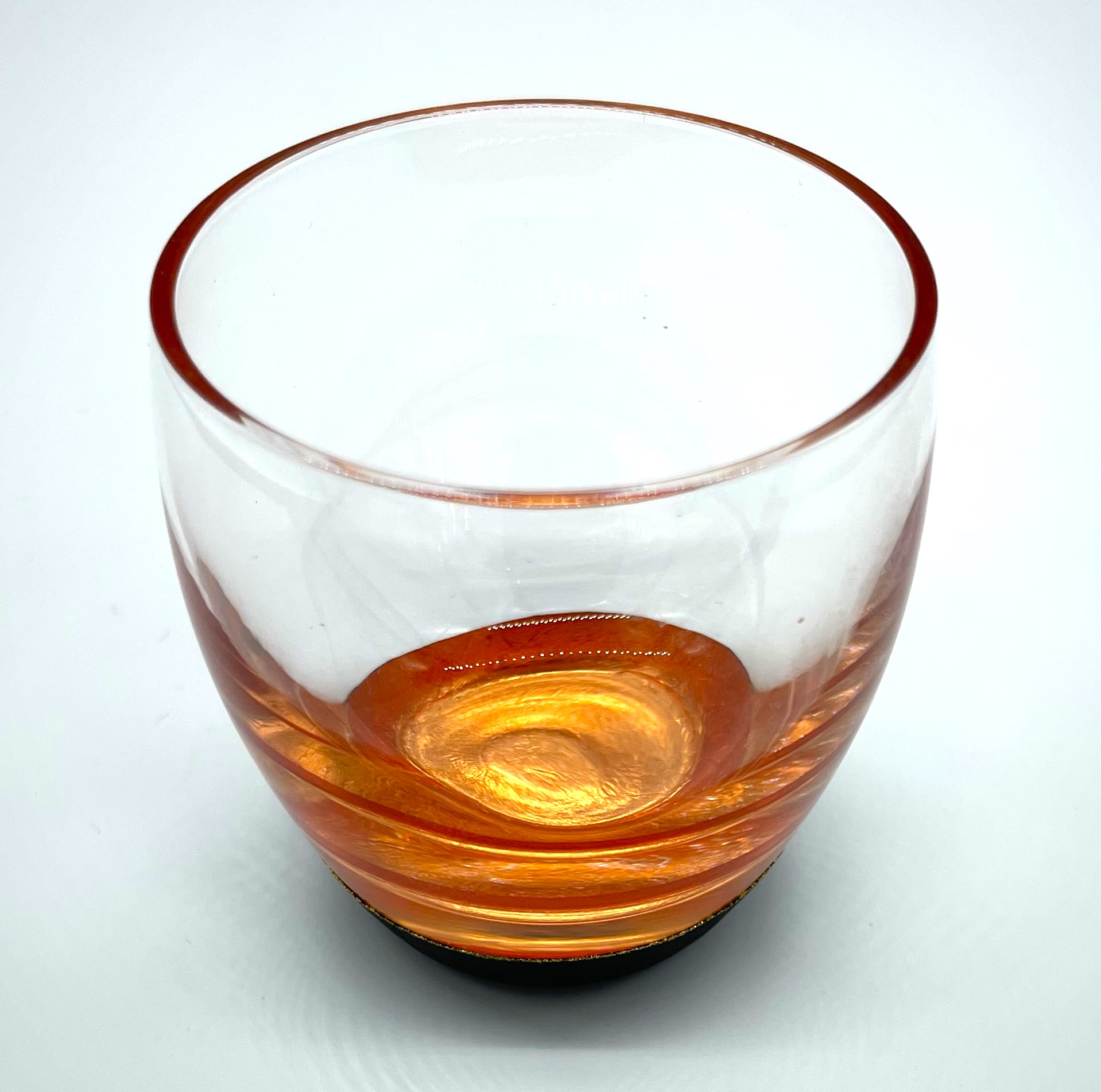 グラスに金箔やホワイトゴールド箔をはり、その上を金剛石目塗独自の砂の石目にした後、仕上げの漆を塗った逸品です。