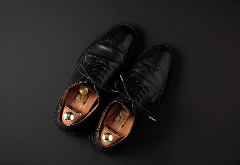 紳士靴に適した細身で組目の細かい紐のラインが上品に引き立てる。
